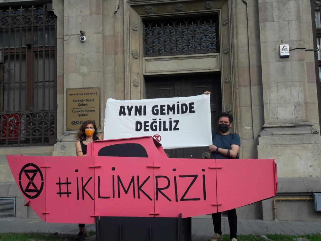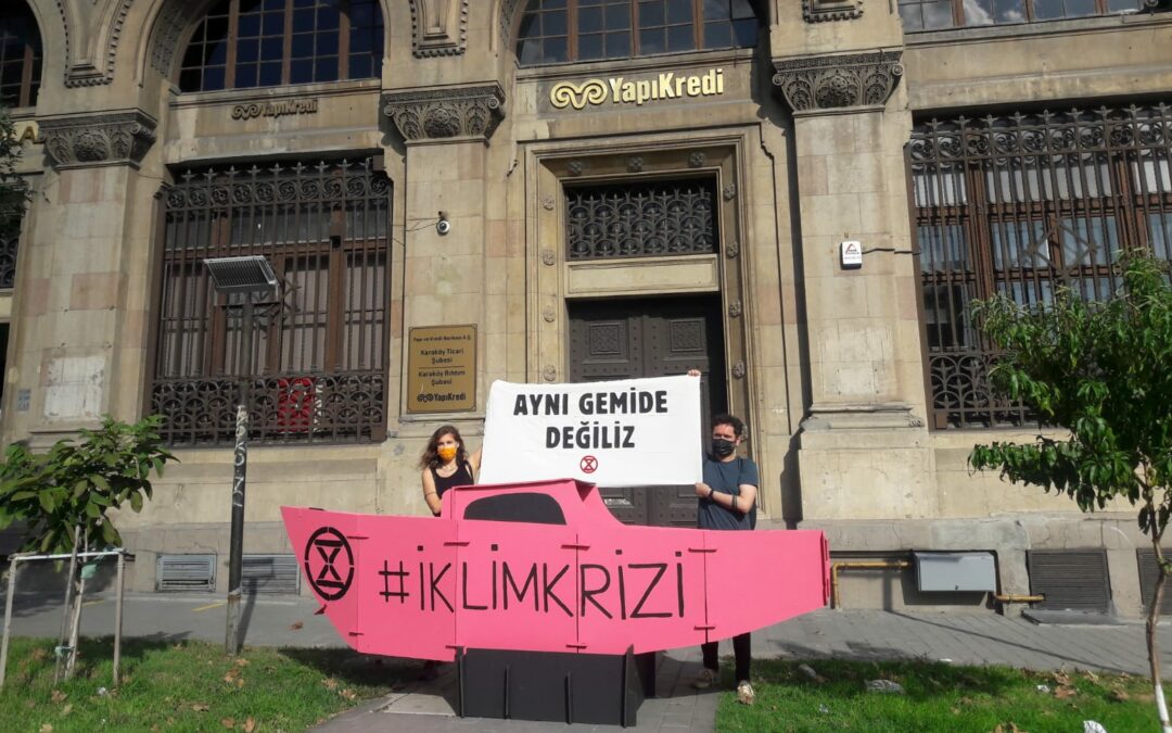 Karaköy’de Yapıkredi Genel Merkezi önünde 19 Eylül günü yaptığımız eylem ile bankalara seslendik ve ekonomiyi karbonsuzlaştırmak için çağrı yaptığımız mektuplarımızı ilettik.